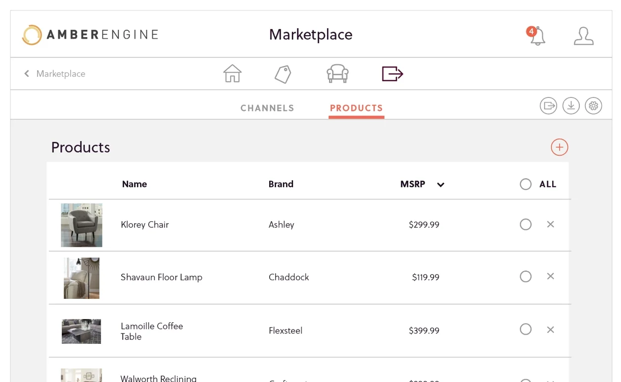 To the left shows the products that are within an output called "Marketplace." A user can have multiple channels within an output based on how they sell.